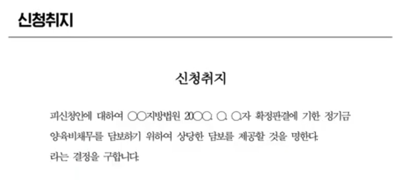 신청취지는 피신청인에 대하여 확정판결에 기한 정기금 양육비채무를 담보하기 위하여 상당한 담보를 제공할 것을 명한다. 라는 결정을 구합니다. 라고 작성하면 된다고 합니다.