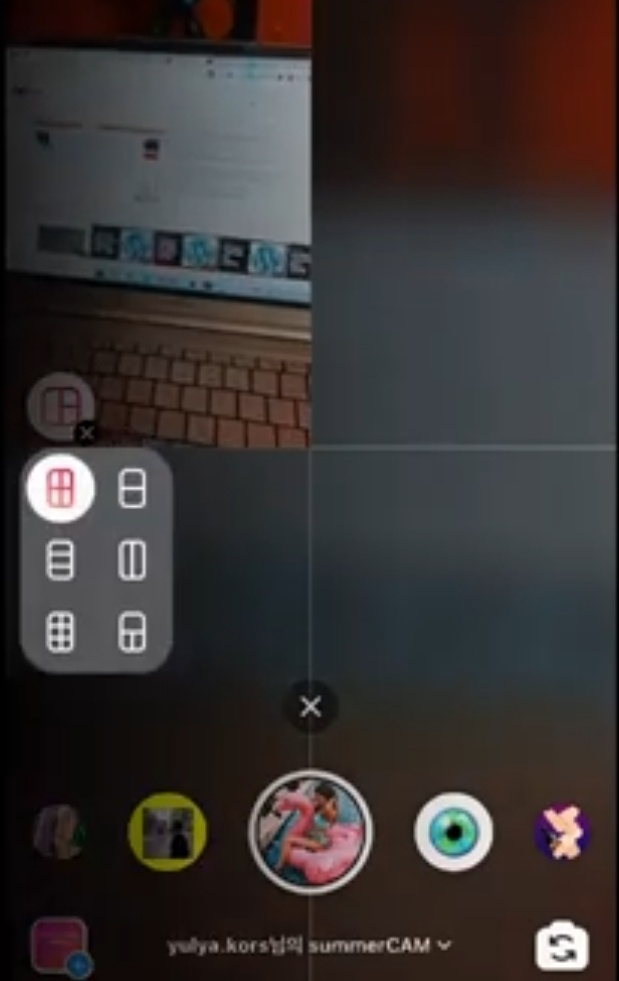 레이아웃 아이콘을 선택하면 부메랑과 같이 여러 필터를 사용할 수 도 있고, 여러 레이아웃을 선택 할 수도 있다고 합니다. 레이아웃을 선택하면 레이아웃의 칸의 크기와 개수에 맞게 다양한 사진을 게시 할 수 있다고 합니다.